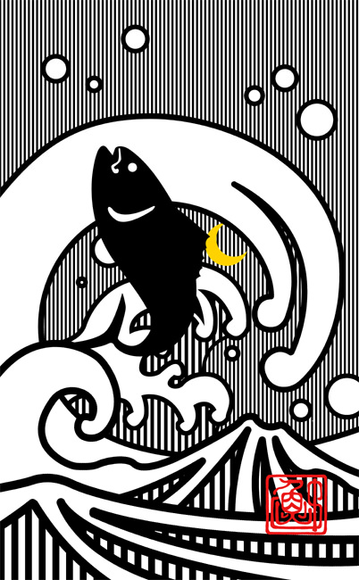 当サイト名の由来にもなった「魚、躍る」をモチーフに。