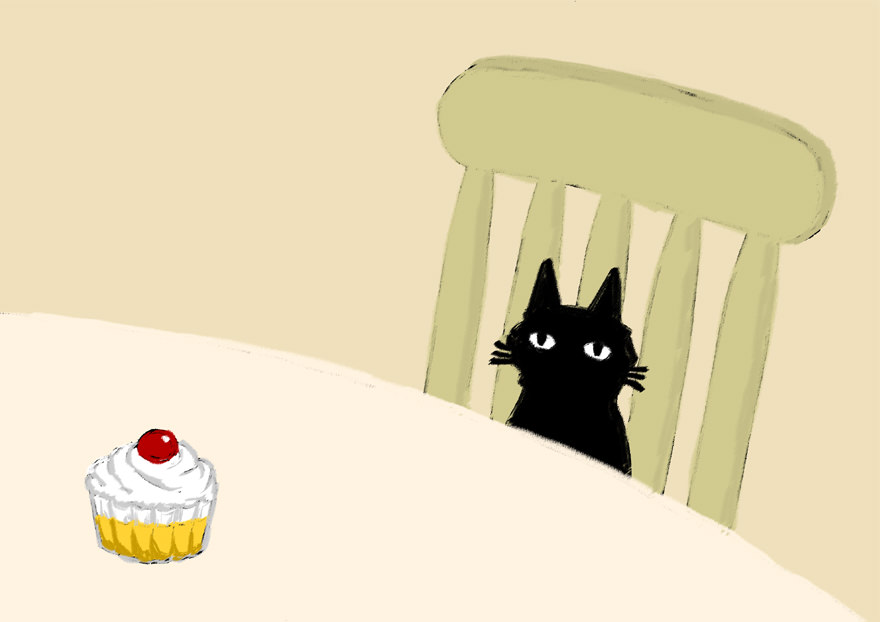 ネコはケーキ食べます。
