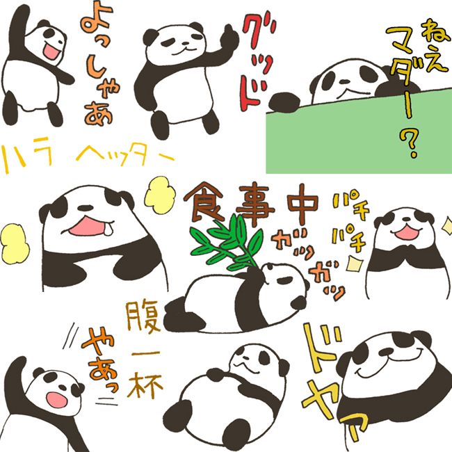 でイラストは5/22にあげた「カエル・ユカイ」に続いてラインのスタンプ第二弾のコドモパンダ。