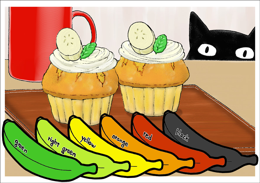 元々、これは去るバナナの日(そういう日があるのだ。ちなみに8/7)にバナナな絵を描こうとして思いついたアイデア。最初は単純にバナナの木を入れ込んだ絵にしようと思ったのだけど、バナナの木というものがあまりにも残念なルックだったのでそれは止めた。いや、バナナの実はあんなにポップなのにバナナの木は全然フォトジェニックな感じじゃあなかったすな。